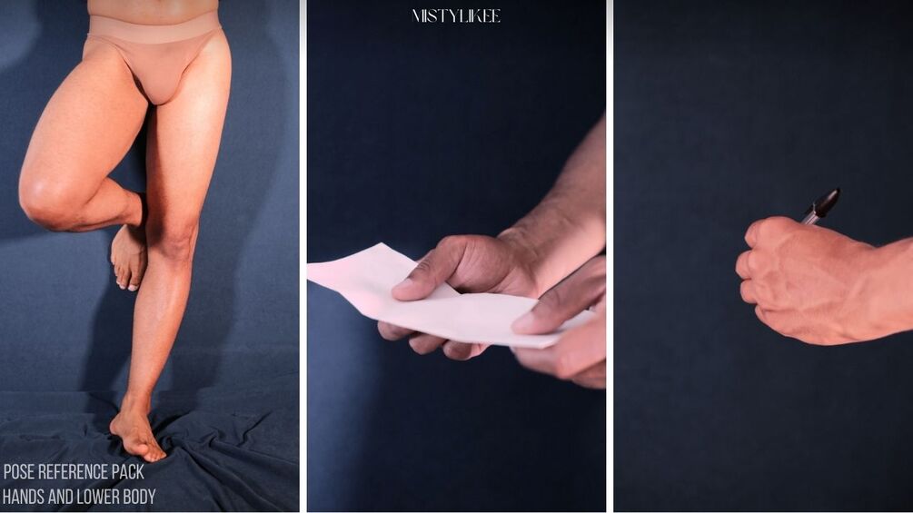 50 poses of hand, and leg positions for all drawing needs. Useful reference for traditional media, as well as in layering for Procreate or Adobe design programs.